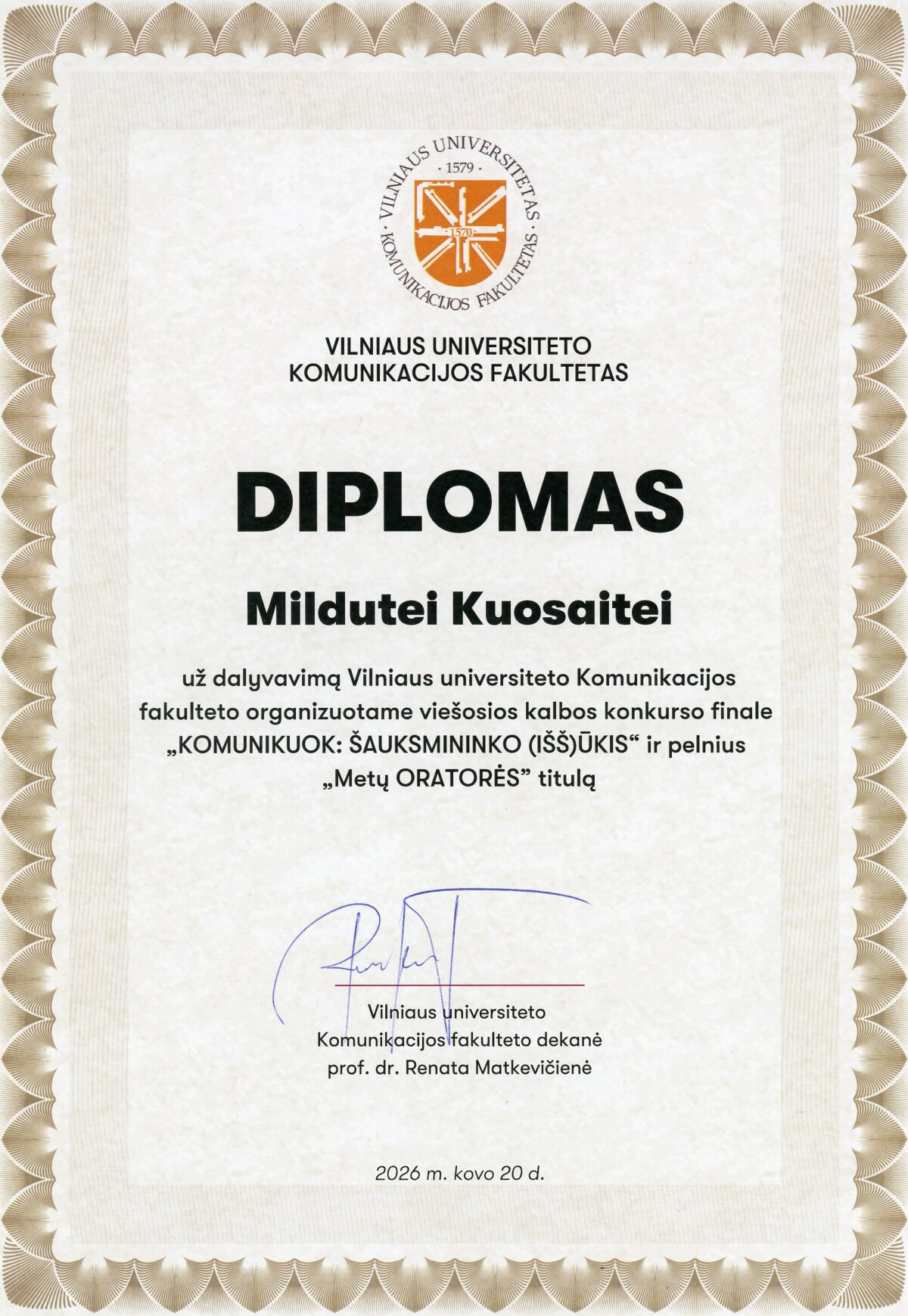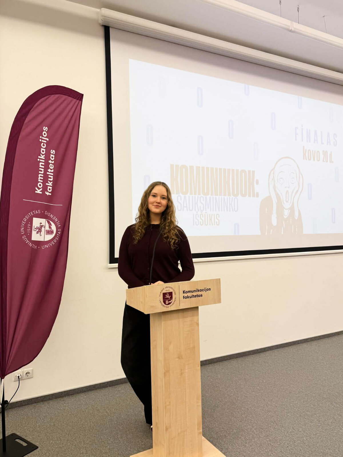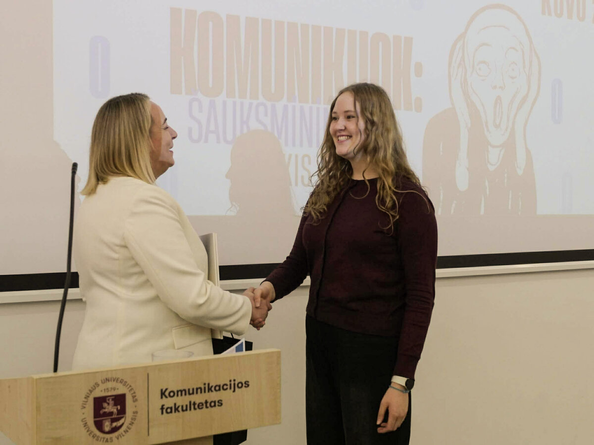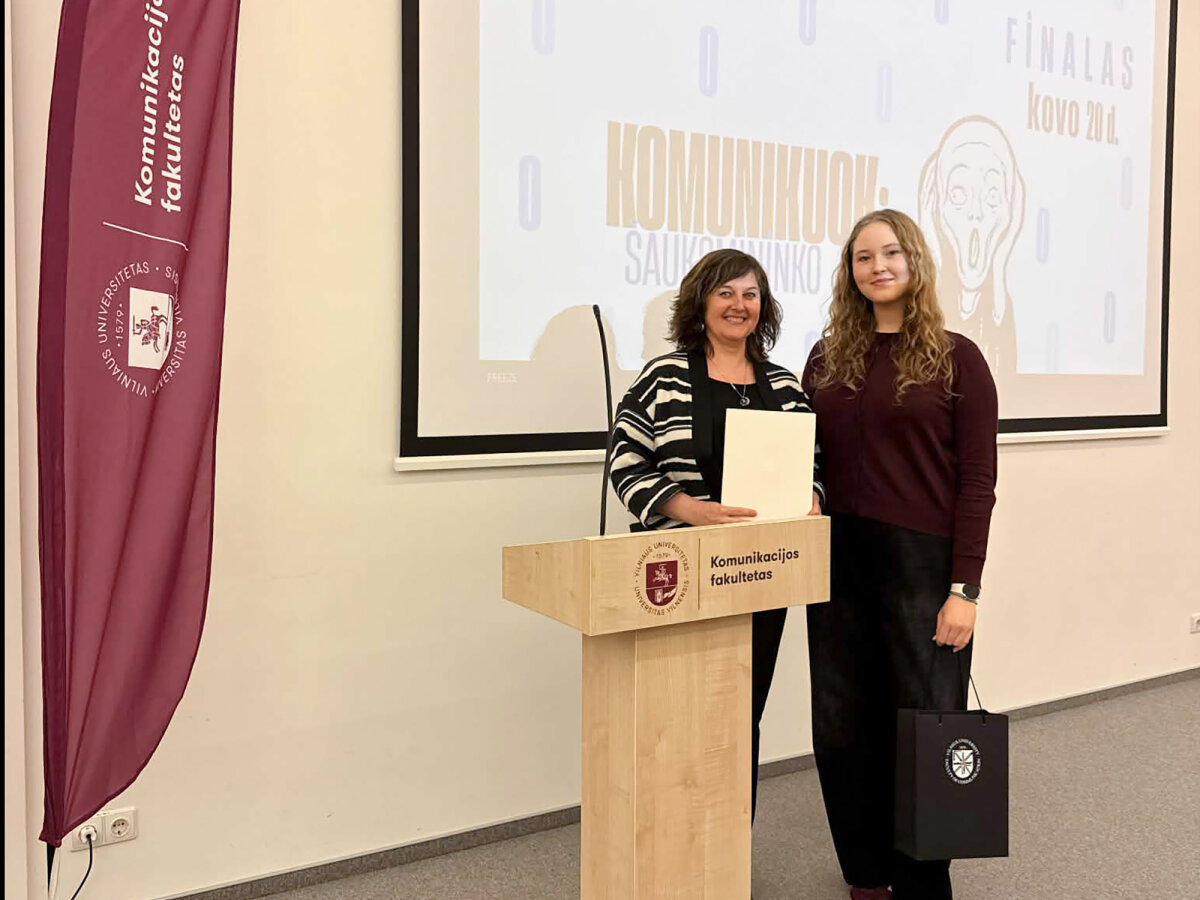Kovo 20 dieną Vilniuje vyko jau trečią kartą Vilniaus universiteto organizuoto I-IV gimnazijos klasių viešosios kalbos konkurso „KOMUNIKUOK: ŠAUKSMININKO (IŠ)ŠŪKIS“ finalinis etapas. Jame dalyvavo 10 finalisčių iš visos Lietuvos, tarp jų ir aš su savo palaikymo komanda, kurią sudarė konkursui parengusi lietuvių kalbos ir literatūros mokytoja Renata Žemaitienė, mokytoja Vaida Maleckaitė bei bičiulių kompanija: Julija, Mantas, Gabija, Viktorija, Agnesa, Nelija. Renginį pradėjo VU Komunikacijos fakulteto žurnalistikos pirmakursiai, atlikdami dueto „Kamanių šilelis” dainą „Paleisk mane namo” ir „Tele Bim-Bam” dainą „Voras“. Tai sukūrė jaukią atmosferą dalyvėms. Konkurse išgirdome daug viešųjų kalbų, parengtų labai aktualiomis ir įdomiomis šiuolaikiniam žmogui temomis. „Šauksmininko” finalo dalyves vertino komisija, kurią sudarė pirmininkė Giedrė Vaičekauskienė, DELFI vyriausioji redaktorė Rasa Lukaitytė-Vnarauskienė, radijo laidų vedėja Rūta Kupetytė, viešųjų ryšių ekspertas Linas Kontrimas, rinkodaros ekspertas Mantas Velykis, kalbininkė Lina Murinienė. Džiaugiuosi galėjusi dalyvauti tokiame ypatingame renginyje ir turėjusi galimybę atstovauti mūsų gimnazijai bei parvežti „Metų ORATORĖS“ laimėjimą. Auditorijai sakiau viešąją kalbą tema „Noras būti išgirstam”. Per šį konkursą įgijau naujos patirties apie viešųjų kalbų rengimą bei jų pristatymą.