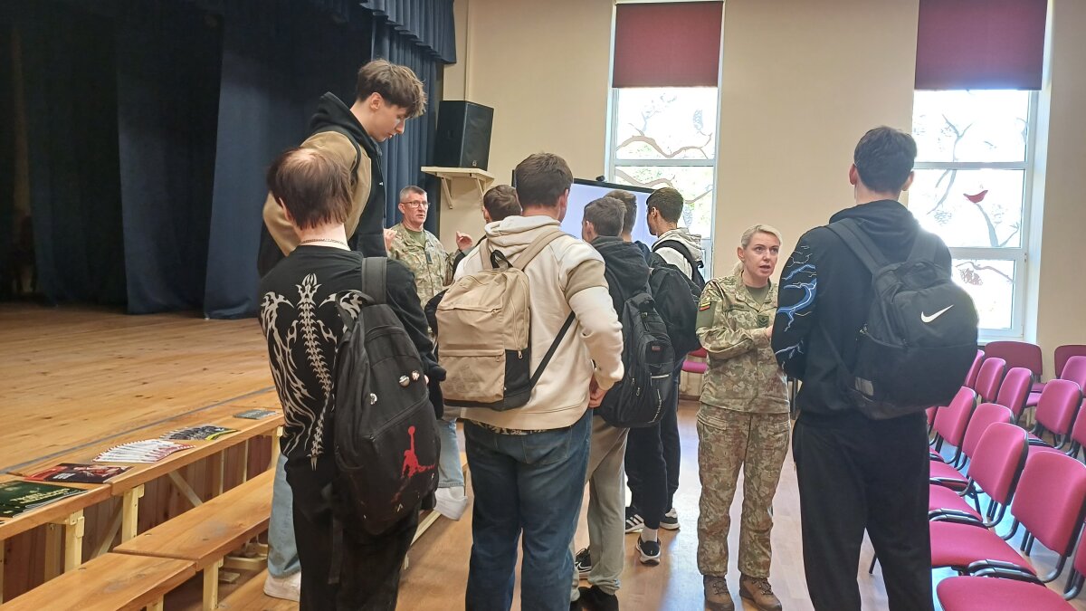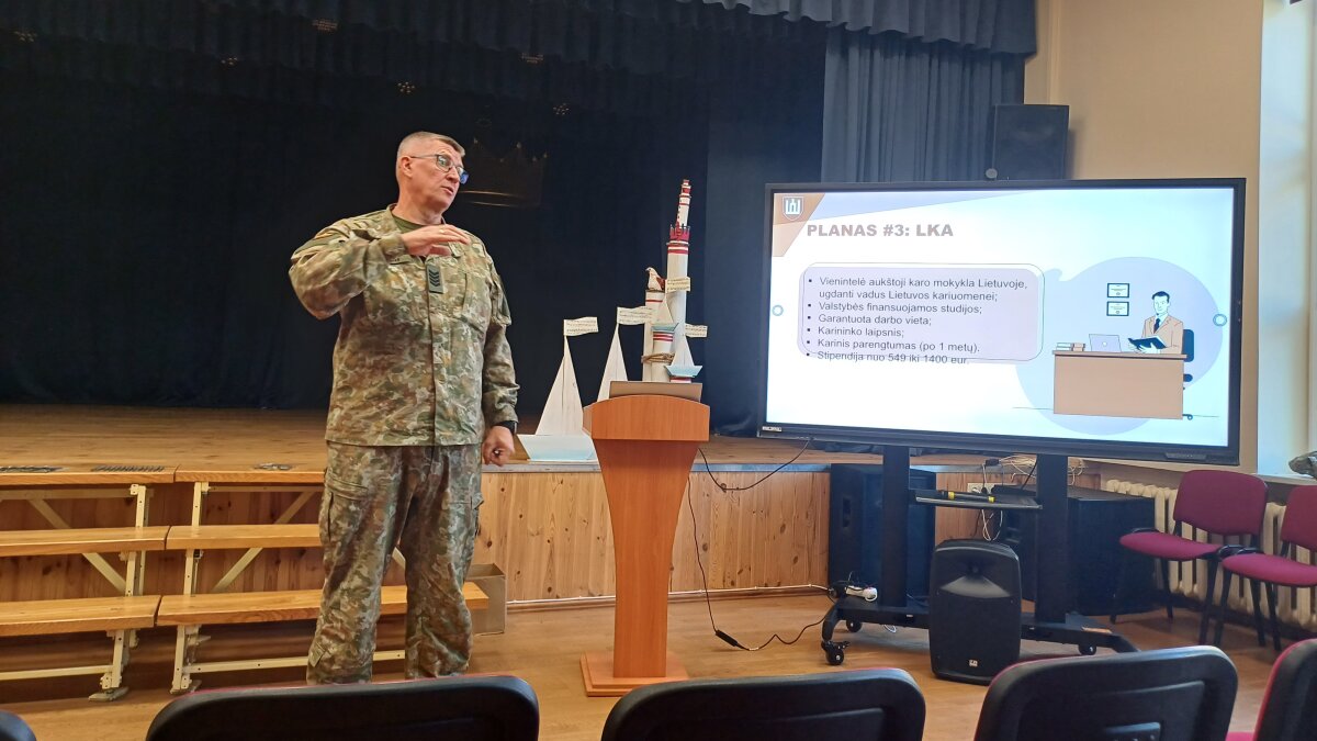 Mokiniai buvo supažindinti su alternatyviais karinės tarnybos atlikimo būdais – galimybe rinktis jaunesniųjų karininkų vadų mokymus (JKVM), studijas Generolo Jono Žemaičio akademijoje ar tarnybą savaitgaliais Krašto apsaugos savanorių pajėgose (KASP). Kartu su mokiniais analizuoti kiekvieno pasirinkimo privalumai – socialinės garantijos, išmokų dydžiai, suteikiami kariniai laipsniai, galimybės derinti civilį ir karinį gyvenimą, pasidalinta kariūno gyvenimo kasdienybe.