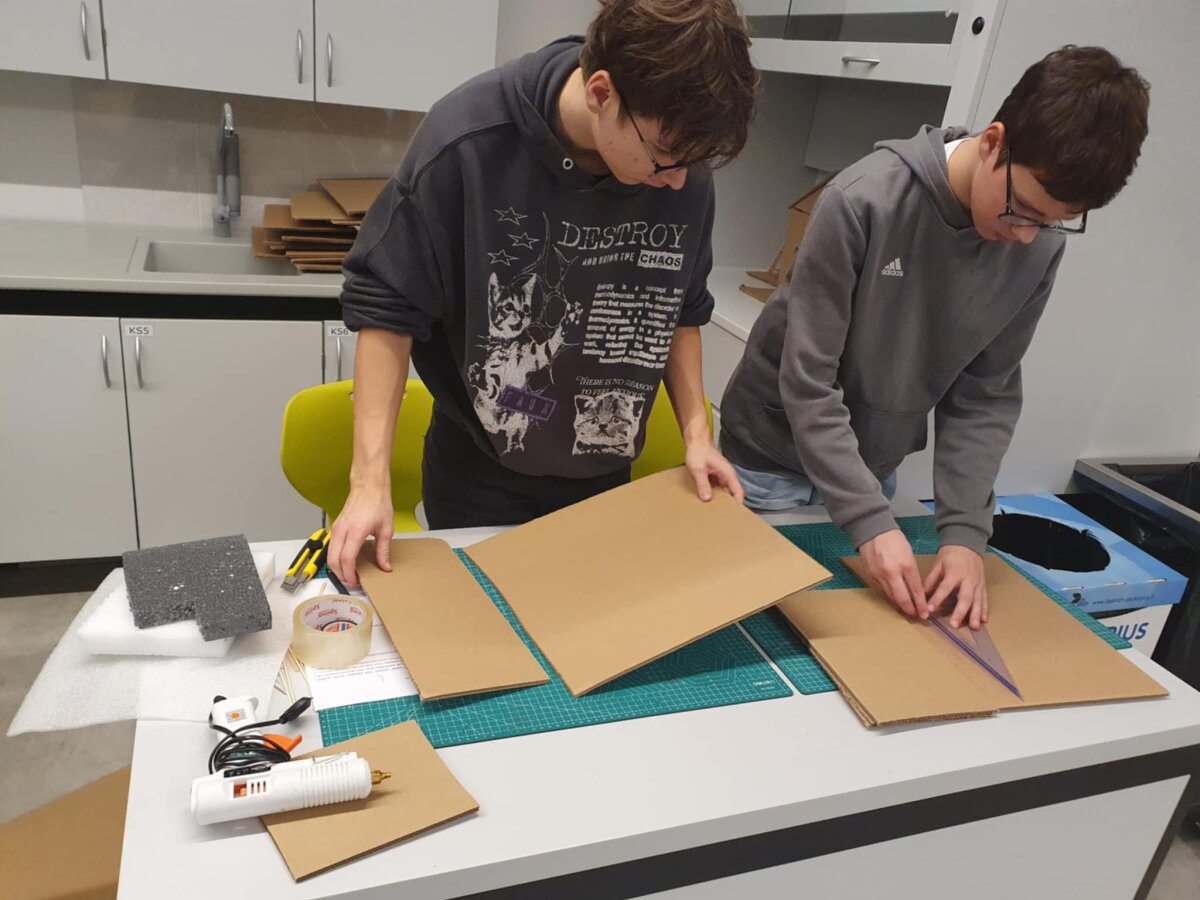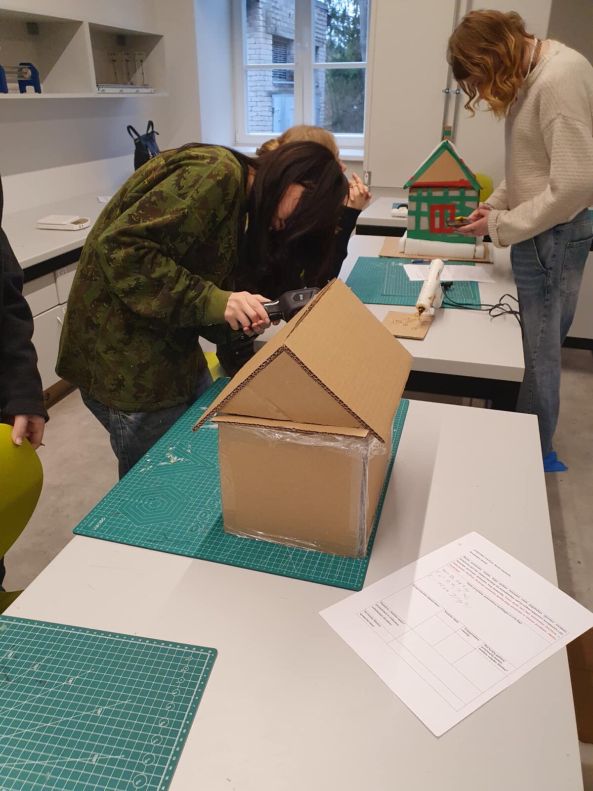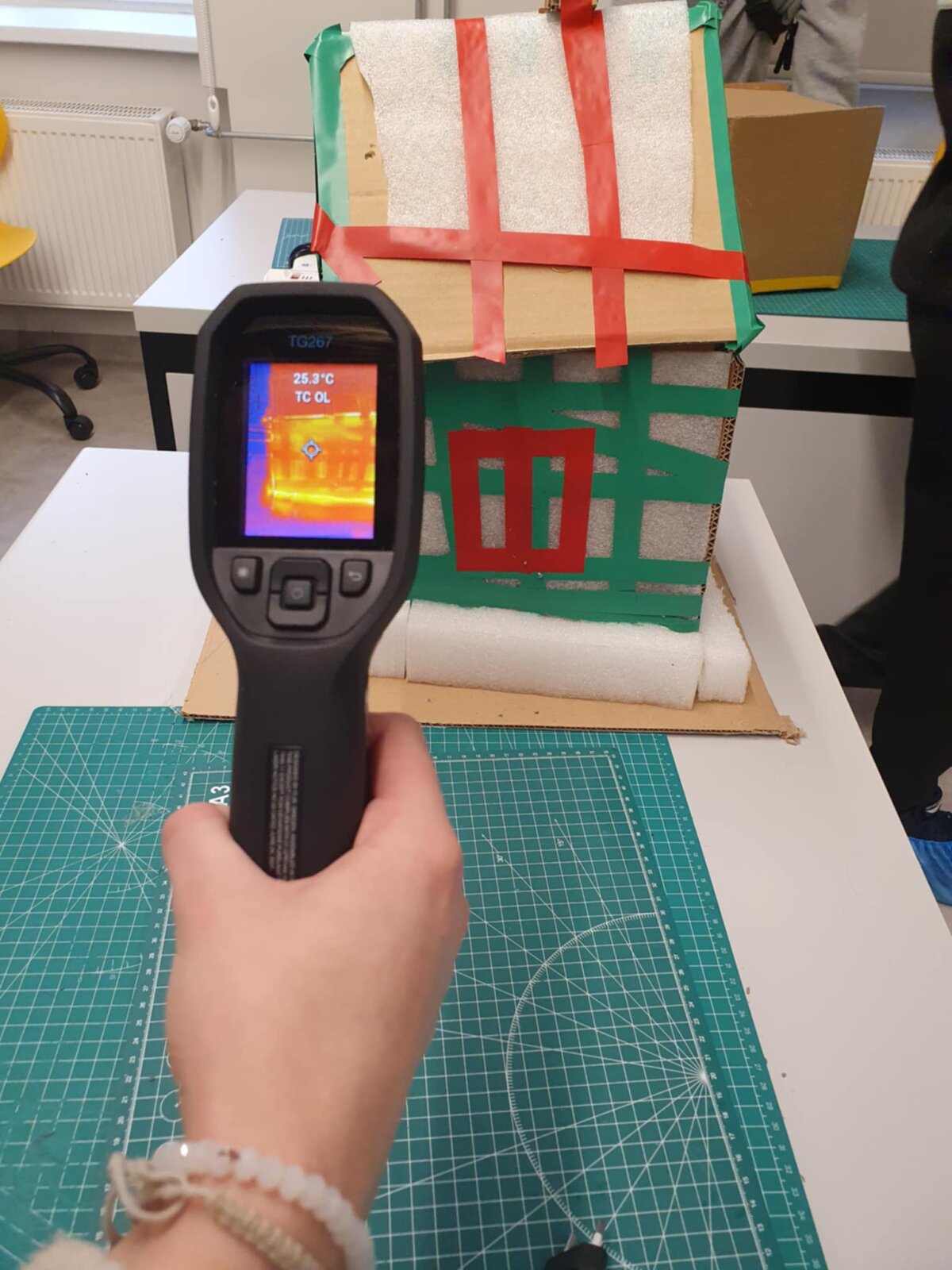 Atlikę matavimus, mokiniai analizavo gautus rezultatus, vertino konstrukcijų efektyvumą ir priėmė sprendimus, kaip patobulinti namo modelį. Jie gilinosi į tai, kaip medžiagų savybės, jų išdėstymas ir sujungimų kokybė lemia šilumos judėjimą ir pastato energetinį efektyvumą. Tolesniame etape mokiniai atliko konstrukcijų koregavimus, stiprino šilumai laidžias vietas ir tikrino, ar pokyčiai pagerino namo šilumos sulaikymo rodiklius.