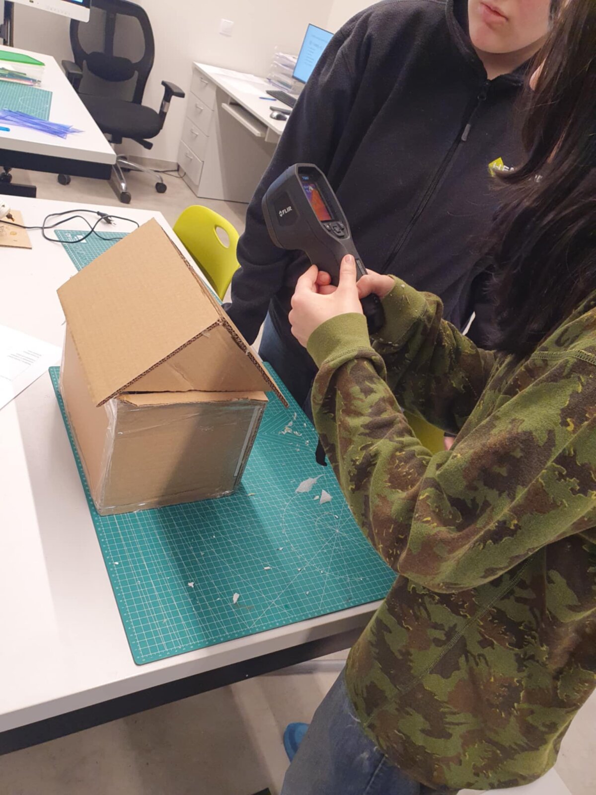 Tyrimo metu mokiniai kūrė savo ateities namo modelį, naudodami antrines medžiagas ir įvairias tvirtinimo priemones. Kiekvienas modelis buvo individualiai suprojektuotas, siekiant įvertinti, kaip pasirinktos medžiagos ir konstrukcijos įtakoja šilumos išsaugojimą. Po pradinio konstravimo etapo mokiniai atliko bandymus su termovizoriumi – specialiu prietaisu, leidžiančiu nustatyti temperatūrų skirtumus ir identifikuoti namo „silpnąsias vietas“, kuriose šiluma prarandama labiausiai.