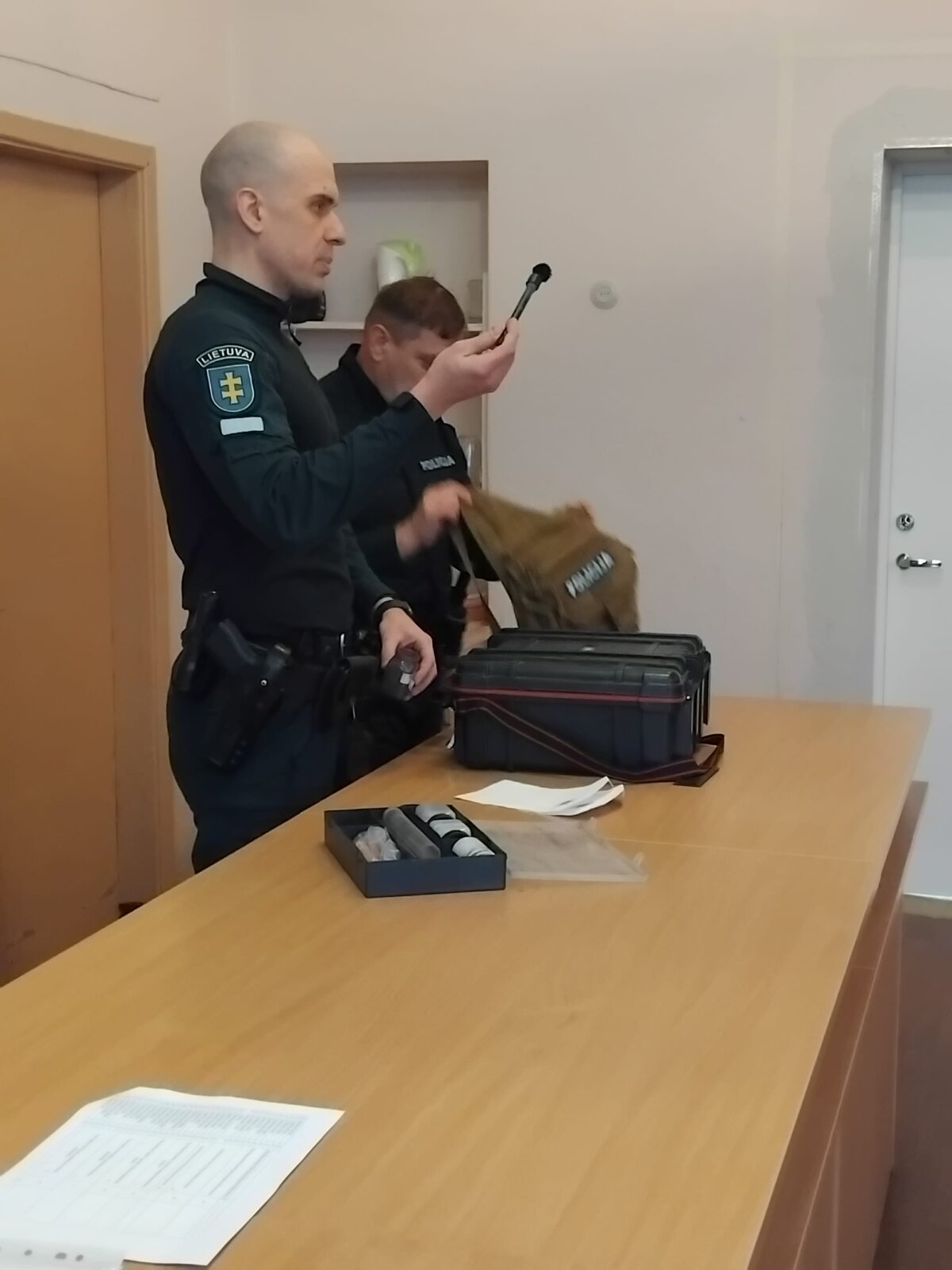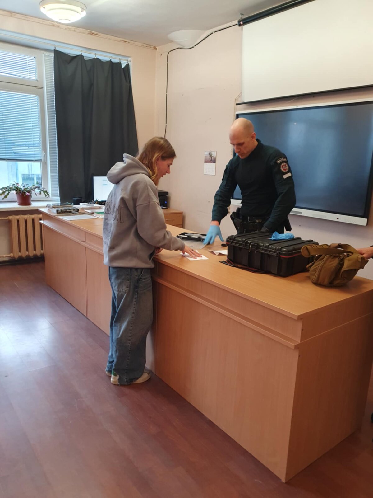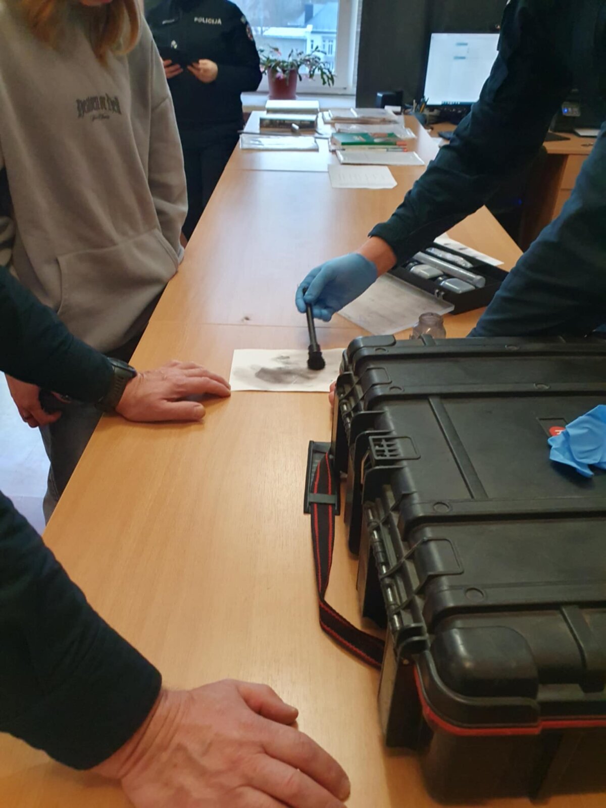 Pareigūnai mokiniams pristatė, kaip atliekami tyrimai nusikaltimo vietoje, kokiais principais vadovaujamasi renkant įkalčius ir kaip profesionaliai atliekamas pirminių duomenų fiksavimas. Buvo akcentuota, kad kriminalistiniai tyrimai yra kompleksinis procesas, kuriame svarbus ne tik praktinis pareigūnų pasirengimas, bet ir skirtingų mokslo sričių taikymas. Mokiniai sužinojo, kaip fizikos, chemijos ir biologijos žinios padeda ekspertams identifikuoti nusikaltimo vietoje rastas medžiagas, nustatyti jų kilmę, atlikti pėdsakų analizę ir susieti juos su konkrečiais asmenimis ar įvykiais. Pareigūnai taip pat paaiškino, kaip specializuota įranga ir laboratoriniai metodai leidžia tiksliai įvertinti pėdsakus, kurie plika akimi neretai nematomi.