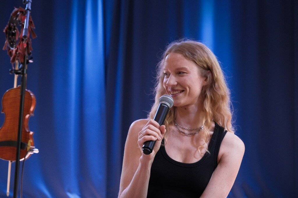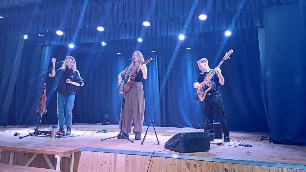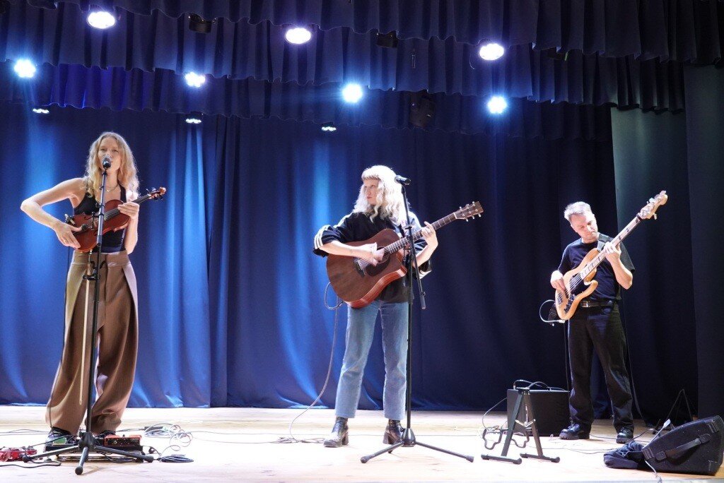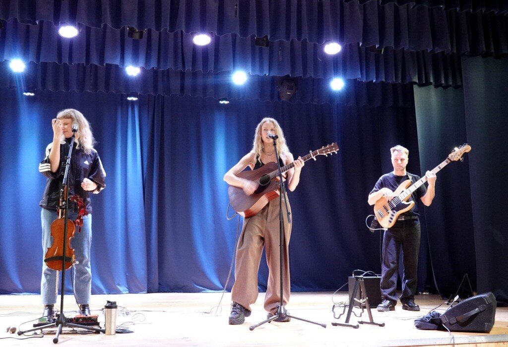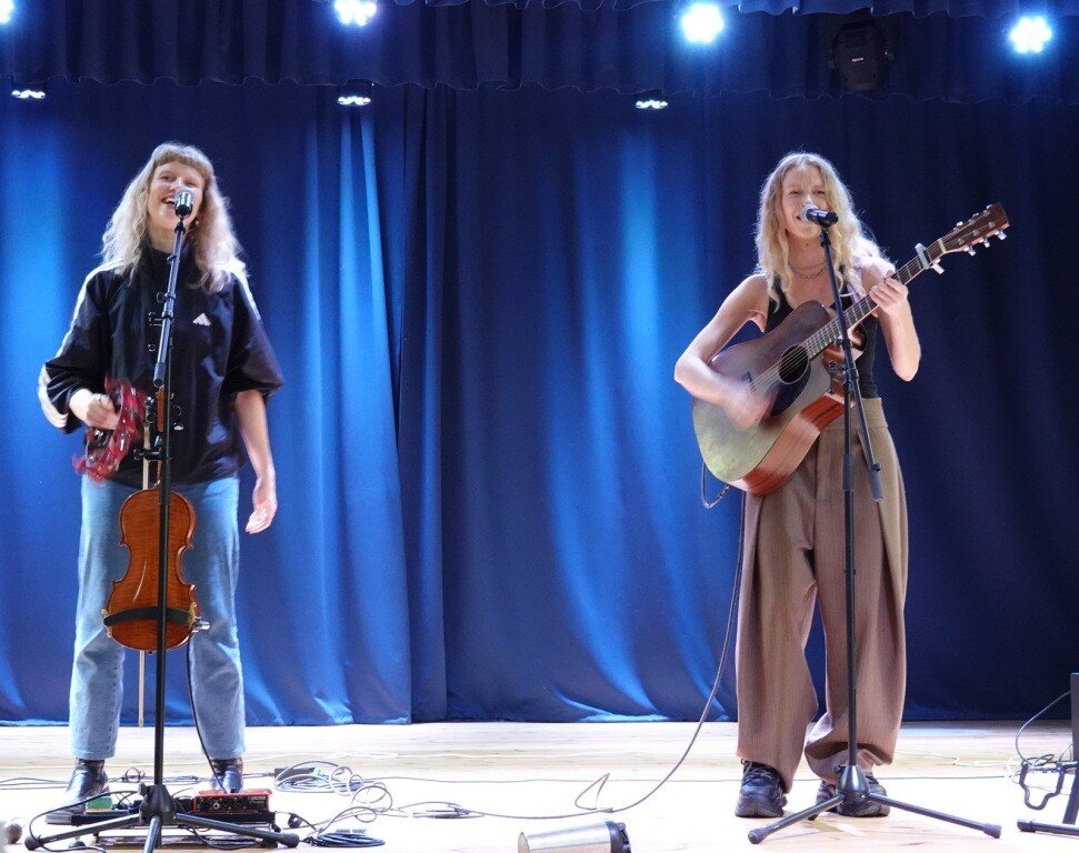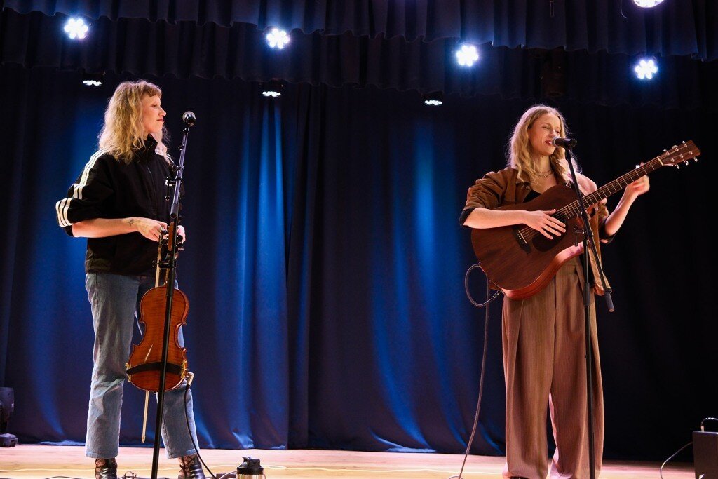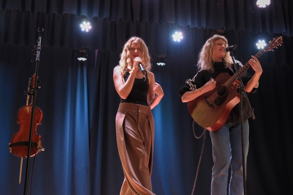 Pirmojoje susitikimo dalyje atlikėjos surengė jaukų koncertą. Skambėjo tiek dar mokyklos laikais sukurtos, tiek naujausios jų dainos. Kiekvieną kūrinį lydėjo trumpi, nuoširdūs pasakojimai apie jo atsiradimą, kūrybines paieškas ir patirtis, vedusias į sceną. Salėje netrūko dėmesingo klausymo ir šiltų emocijų – klausytojai lengvai įsitraukė į kuriamą nuotaiką.