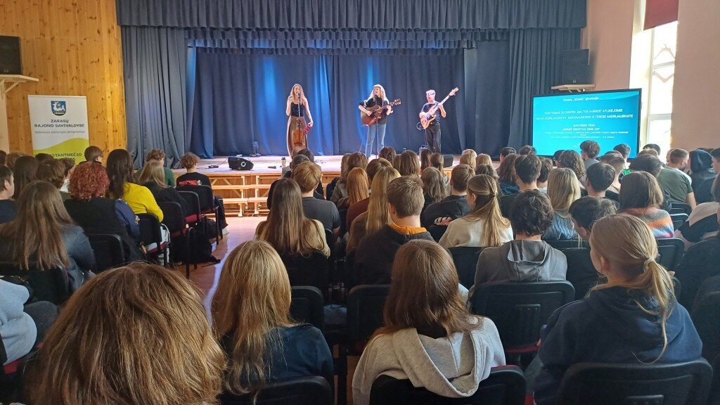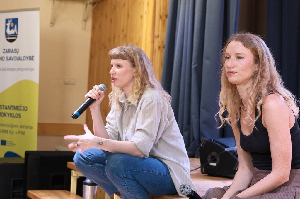 Kovo 23 d. Zarasų „Ąžuolo“ gimnazijoje skambėjo muzika, asmeninės istorijos ir atviri pasakojimai apie kelią į sceną – čia vyko susitikimas su buvusiomis gimnazijos mokinėmis, grupės „Baltos varnos“ dainų kūrėjomis ir atlikėjomis Milda Andrijauskaite-Bakanauskiene ir Terese Andrijauskaite. Renginys organizuotas įgyvendinant projekto „Tūkstantmečio mokykla II“ veiklų ciklą „Lyderystės ir karjeros ugdymo akademija“.