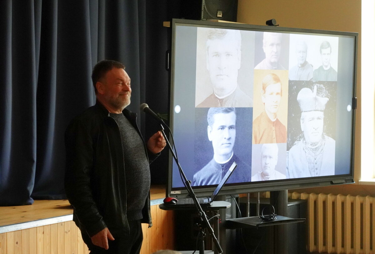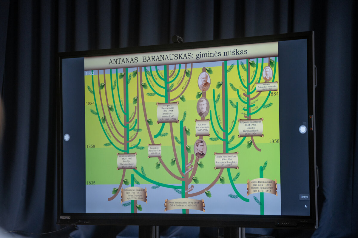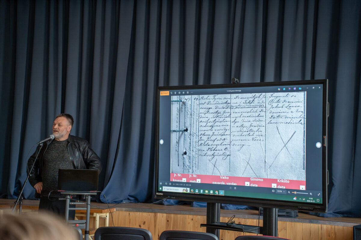 „Žmogus kaip muziejinė vertybė: netikėtas (at)pažinimo džiaugsmas“ – taip vadinosi muziejaus Krašto istorijos skyriaus vedėjo Tautvydo Kontrimavičiaus paskaita. Pranešėjas gimnazistus pakvietė į šią turiningą paskaitą apie muziejininko darbą, asmenybės archeografiją. Susidomėję klausėmės, kaip iš nuotraukų, metrikų ir kitų senų dokumentų rekonstruojami asmenybių gyvenimo epizodai. Didelį įspūdį paliko rašytojų A. Baranausko, J. Biliūno giminių genealoginių medžių „miškas”, buvo įdomu, kas šių žymių žmonių giminaičiai šiandien. Mokiniai sužinojo, kaip galėtų „užsiauginti“ savo kilmės medį. Tautvydas Kontrimavičius gimnazijai dovanojo paties sudarytą 2026 m. pradžioje pasirodžiusią Lietuvos rašytojų kūrybos sutelktinę „Balsai prie Klėtelės“. Tai A. Baranausko ir A. Vienuolio-Žukausko memorialinio muziejaus knyga, skirta A. Baranausko klėtelės 200-osioms metinėms.