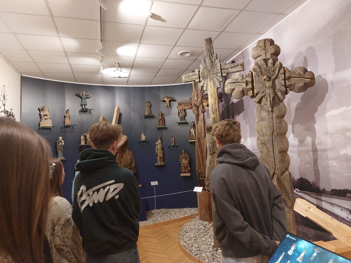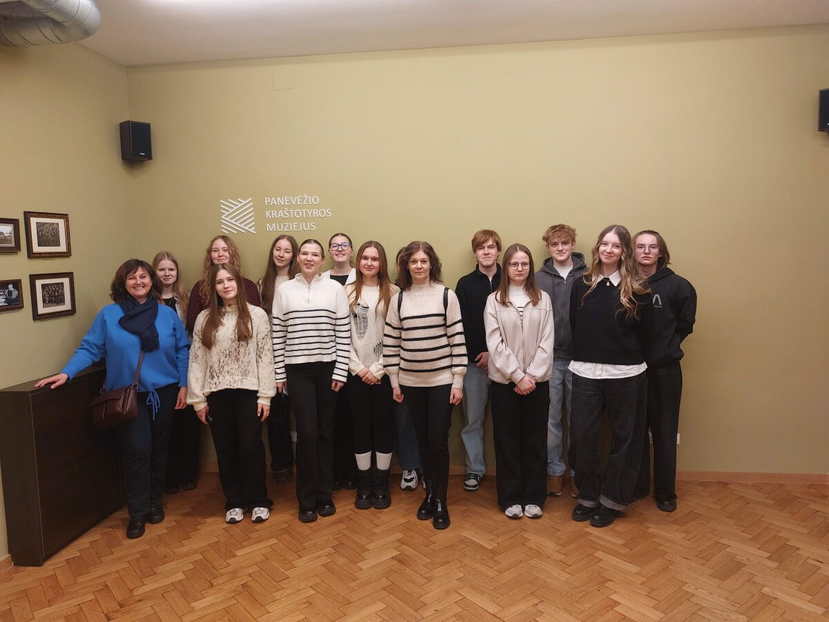 Šaltą, bet saulėtą penktadienio rytą su grupe II gimnazijos klasių mokinių išvykome į Panevėžį. Teatre „Menas“ buvo suplanuota integruota literatūros ir teatro pamoka. Su II klasės gimnazistais per literatūros pamokas nagrinėjome Antikos laikų dramaturgo Sofoklio tragediją Antigonė“, teatre „Menas“ žiūrėjome, po to aptarėme spektaklį „Anti“, kuris ne tik priminė nagrinėtą kūrinį, bet ir leido pamąstyti apie šiandienos jauną žmogų, jo išgyvenimus. Beveik dvi valandos scenoje kartu su aktoriais pralėkė greitai, įdomiai, smagiai. Be to, lankėmės inovatyviame, įdomiame Panevėžio kraštotyros muziejuje. Tačiau geriausiai apie išvyką liudija mokinių įspūdžiai. Jais pasidalino Mildutė Kuosaitė.