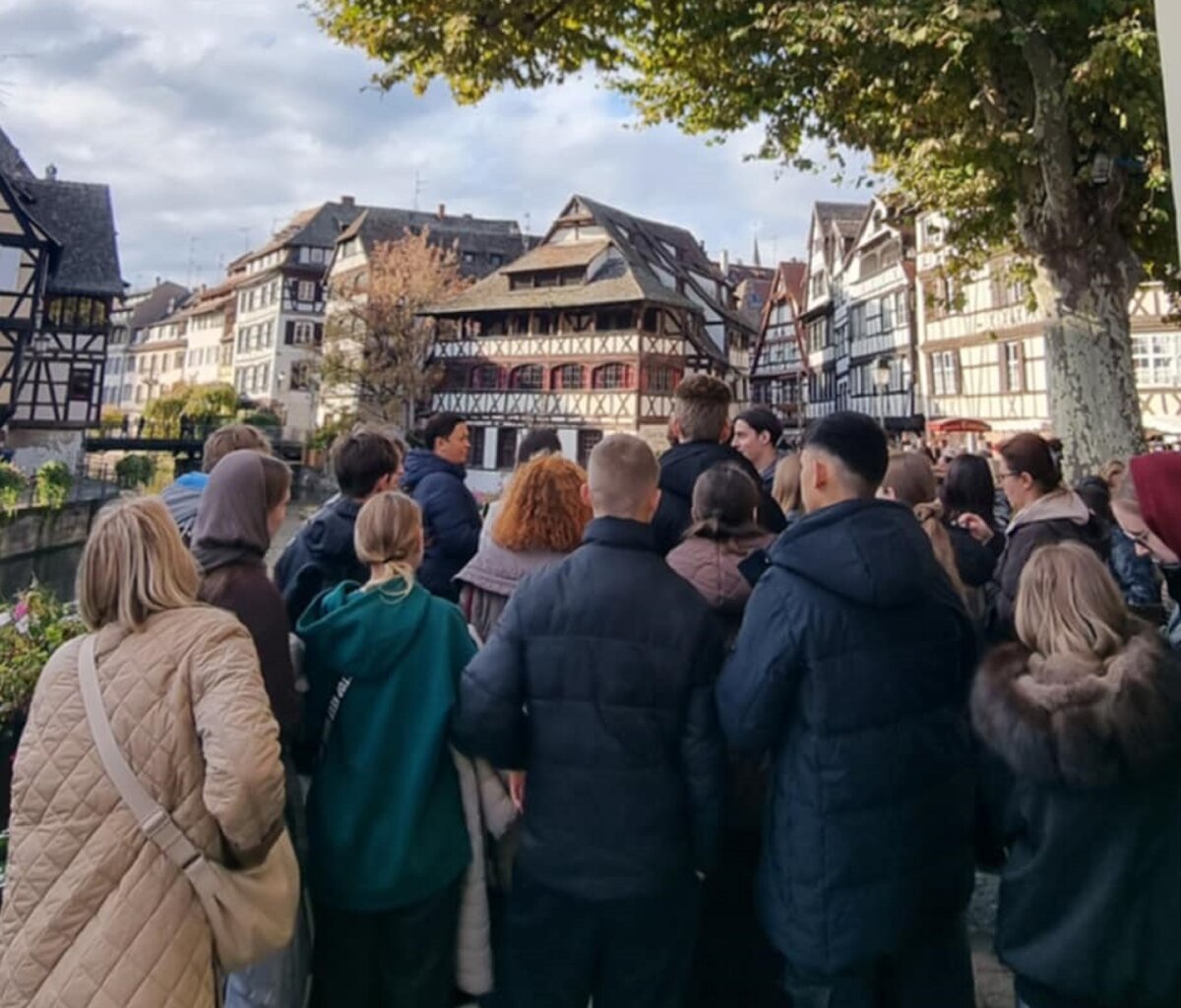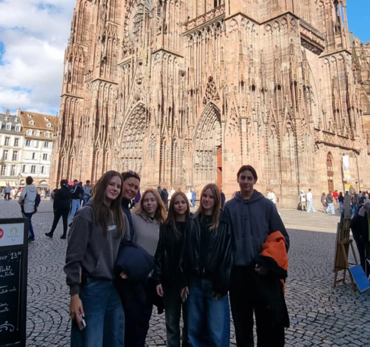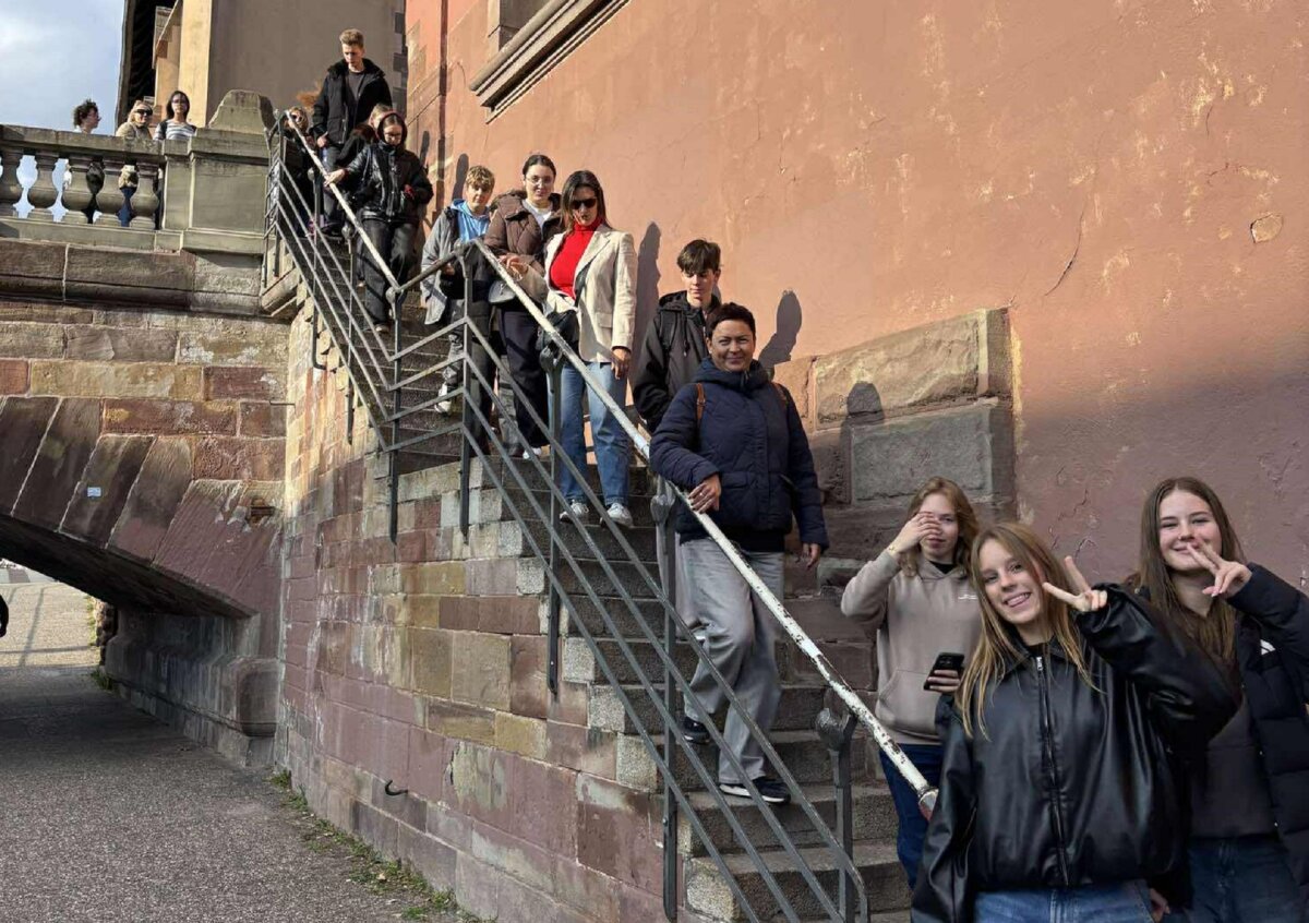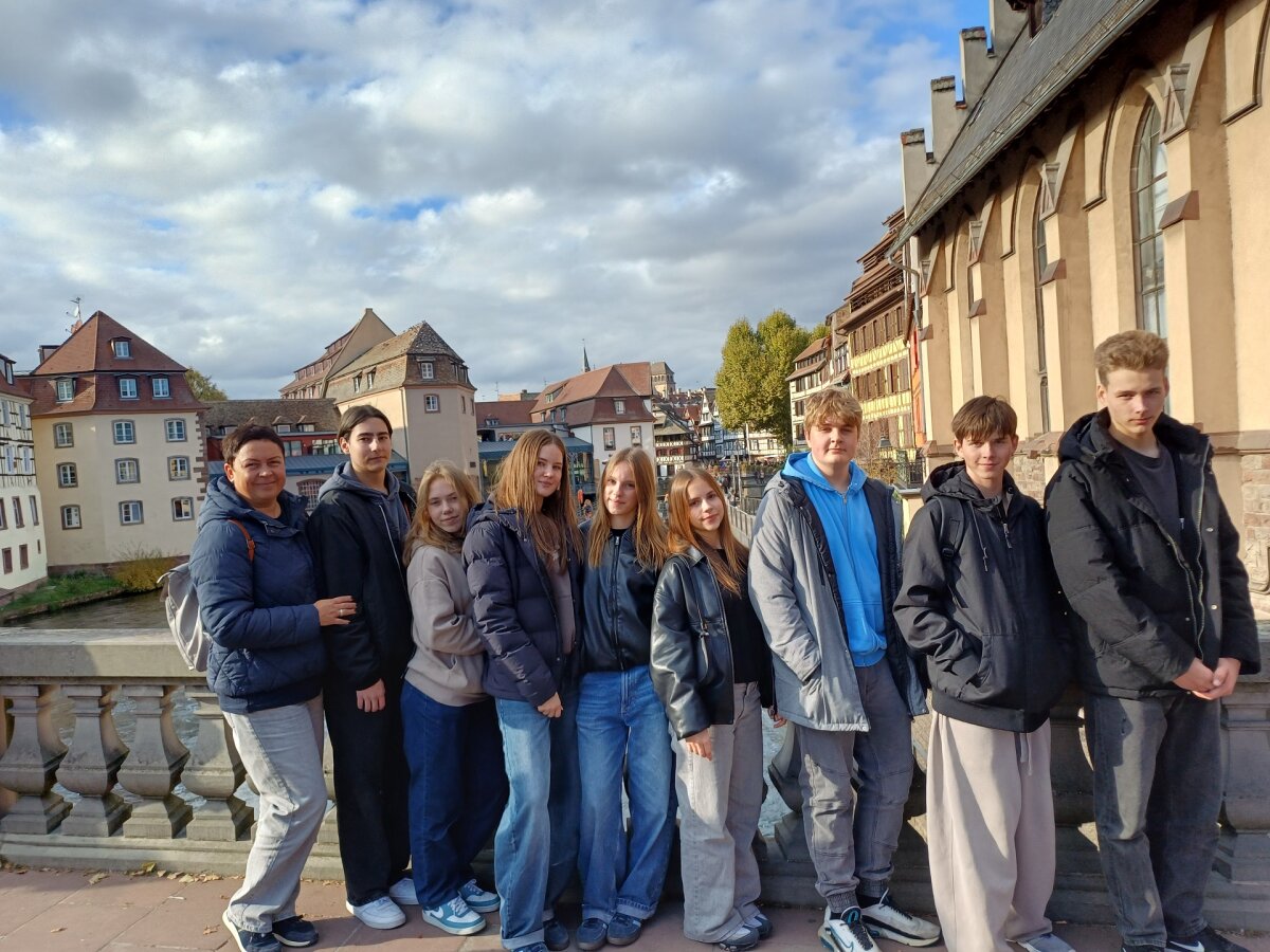 Susitikę su lietuvių bendruomenės vadove Jolita Šilanskiene, pirmiausia mokiniai aplankė garsiąją Strasbūro katedrą, kuri stebino savo didybe ir nepakartojamu grožiu. Katedros viduje pamatėme įspūdingą astronominį laikrodį – tikrą meno ir mokslo šedevrą. Taip pat lankėmės Šv. Petro Naujojoje protestantų bažnyčioje. Čia apžiūrėjome Lietuvai ypatingą gotikinę freską, kuri vadinasi „Europos tautų žygis prie kryžiaus“. Ji vaizduoja Europos tautų žygį į krikščionybę. Freskoje pavaizduota 15 Europos tautų, o paskutinė figūra simbolizuoja Lietuvą, nes mes vėliausiai priėmėme šią religiją. Po įdomaus pasivaikščiojimo nepraleidome progos pasimėgauti neapsakomai gardžiais eklerais, nes visiems žinomas nuostabus prancūziškų gardumynų skonis.