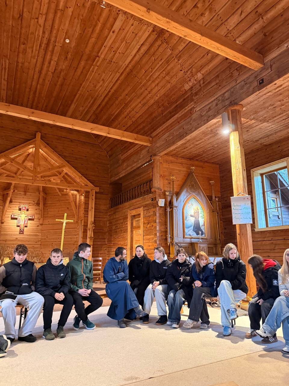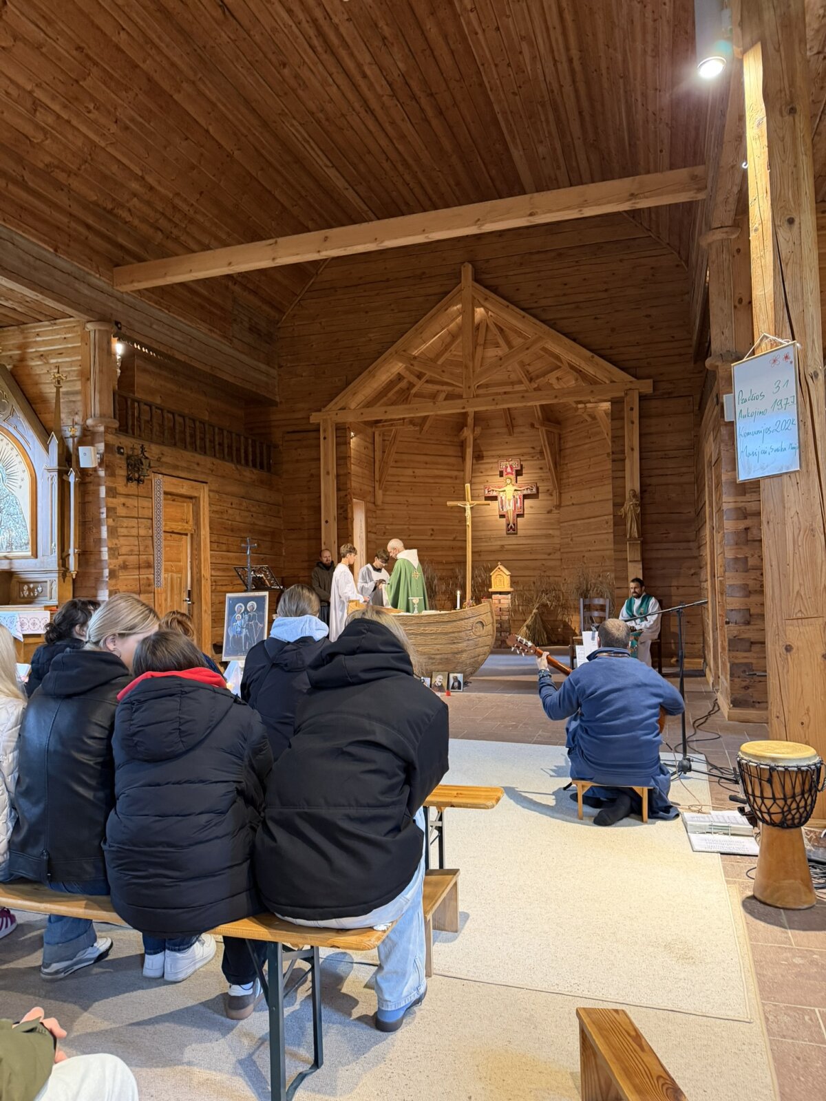 Atvykus į Baltriškes mus pasitiko Tiberiados broliai. Turėjome galimybę sudalyvauti jų mišiose, kuriose patarnavo ir mūsų bendraamžiai. Jų mišios skiriasi nuo įprastų, nes į jas įtraukiama daug giedamųjų maldų. Po mišių turėjome šiltą pokalbį su broliu Egidijumi, kuris mums papasakojo visą Baltriškių įsikūrimo istoriją ir kaip jie dabar čia gyvena. Ačiū broliams už jaukų priėmimą!