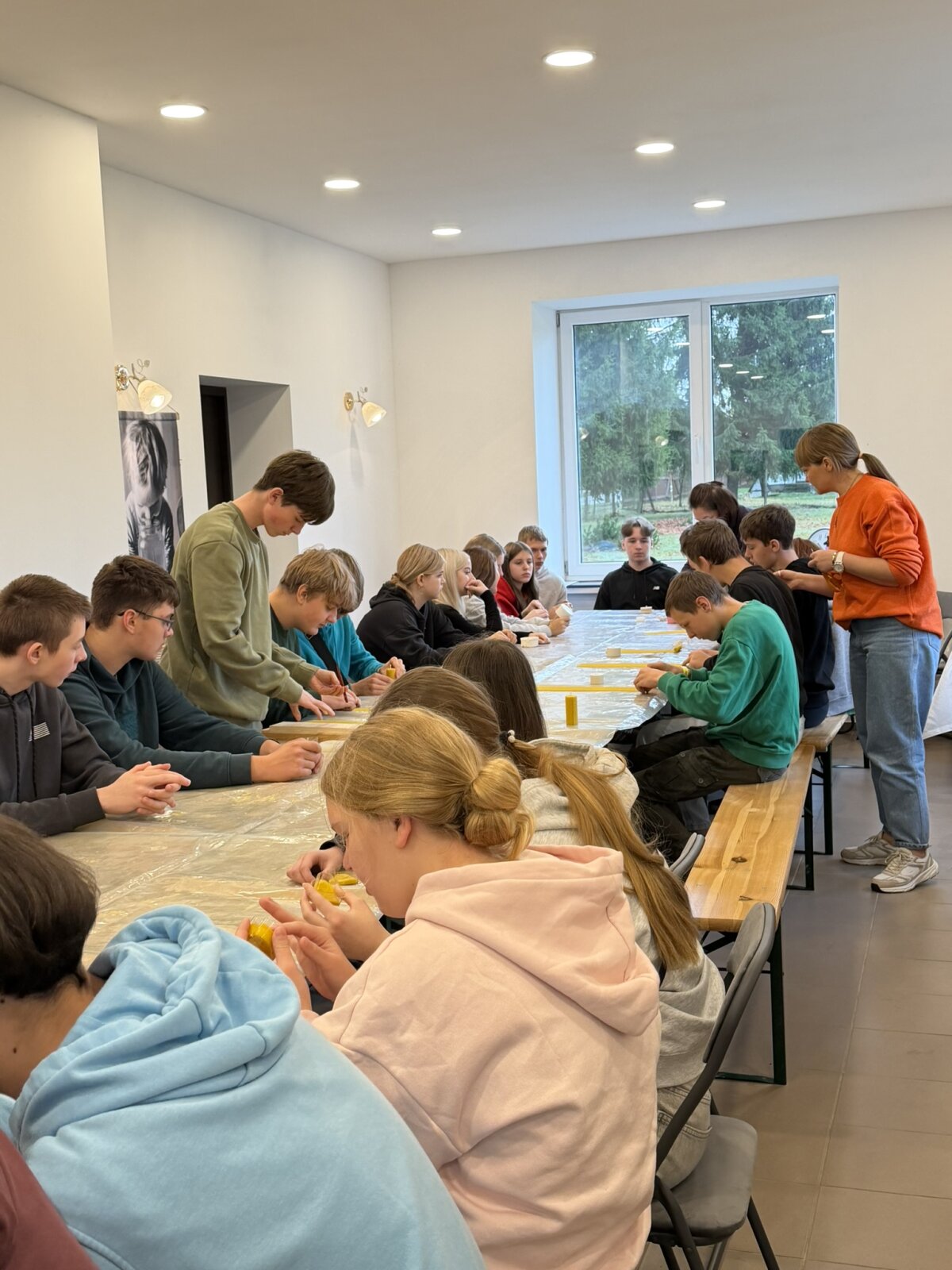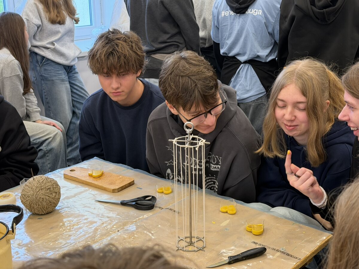 Moksleiviai dalyvavo edukacijoje „Bičių vaško žvakių liejimas“ – išbandė įvairias žvakių gaminimo technikas, pasigamino savo žvakes ir ragavo gardžių natūralių medaus produktų. Šis apsilankymas tapo gyvu pavyzdžiu, kad kūrybiškumas, atkaklumas ir meilė savo veiklai gali atverti tvirtą profesinį kelią net ir mažame miestelyje.
