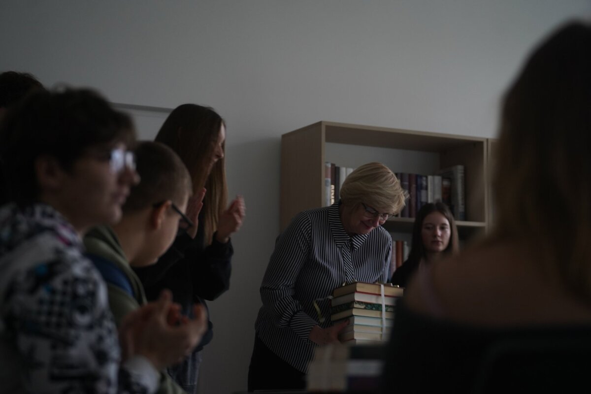 Gruodžio 18 d. informaciniame centre vyko gimnazijos tradicinis Knygų Kalėdų susitikimas. Tai jau 14-as kartas, kai bendruomenė dalinasi gerumu, palinkėjimais ir knygomis. Linksmai kartu su pirmokėmis Ieva ir Auguste visi susirinkusieji dainavo populiariąją dainą „Švęskim Kalėdas kartu”. Direktoriaus pavaduotoja ugdymui D. Gasiniauskienė pakvietė gimnazistus „imti ir skaityti“, džiaugtis skaitymo malonumais. Gimnazija šiai akcijai skyrė lėšų, už kurias buvo įsigytos 36 grožinės literatūros knygos. Akcijos metu gimnazistai padovanojo dar 29 knygas. Biblioteka nuoširdžiausiai dėkoja visiems už knygas, gerumą ir bendrystę, kviečia skaityti, ieškoti sau tinkančios ir patinkančios knygos, taip pat sveikina visą gimnazijos bendruomenę su artėjančiomis šventėmis ir dalinasi gražiu II a klasės gimnazistų sukurtu palinkėjimu:
